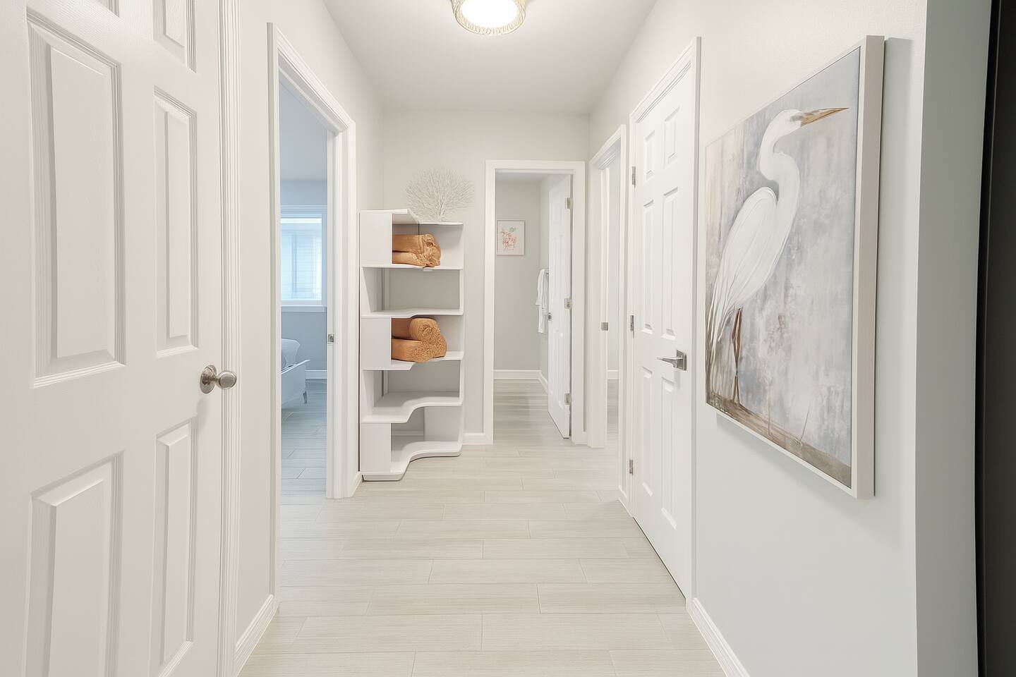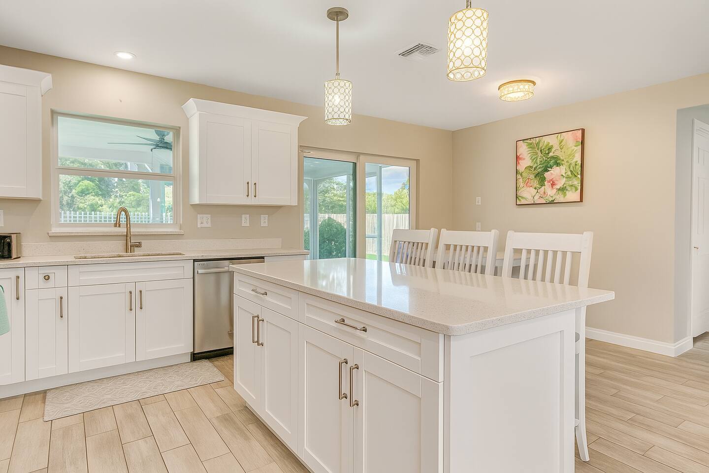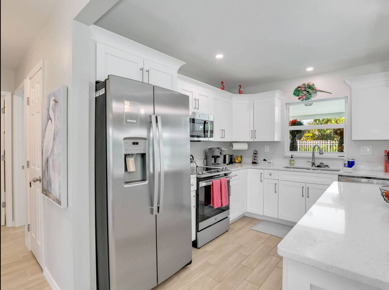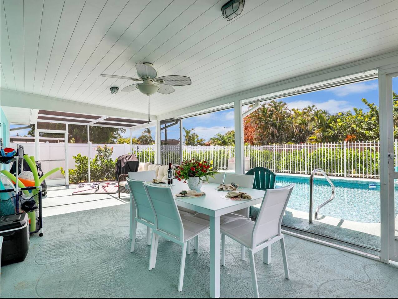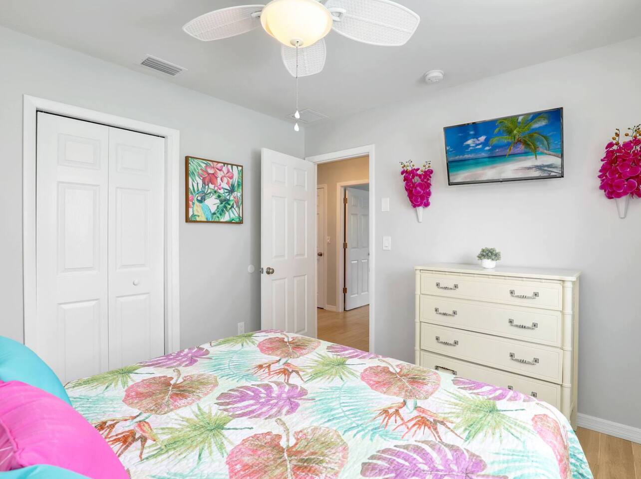 ✔ 3 Comfortable Bedrooms (Sleeps 8) ✔ Open Design Living ✔ Fully Equipped Kitchen ✔ Backyard (Pool, BBQ, Dining, Lounge, Lawn) ✔ Smart TVs ✔ High-Speed Wi-Fi ✔ Bicycles ✔ Laundry ✔ Free Parking The space Step into this tropical beach-inspired retreat, where your tour begins in the open-concept living area. The vibrant, coastal-themed living room seamlessly flows into a fully equipped kitchen and a cozy dining space—perfect for gathering after a day at the beach. Sunlight pours through large windows, illuminating the tasteful decor and creating a bright, welcoming atmosphere designed for relaxation. But the real magic begins when you slide open the doors to the screened lanai. Enjoy a cool drink in the shade, then head out to the backyard—an oasis made for unforgettable moments. Fire up the grill, dine al fresco under the palms, or take a dip in your private swimming pool while the rest of the family lounges and soaks in the sun. When it’s time to unwind, retreat to one of three beautifully appointed bedrooms, each designed with comfort and tranquility in mind. While it may not be your bed at home, we think you’ll find these come pretty close. ★ LIVING ROOM ★ Kick back and relax in the bright, beachy living room—perfect for movie nights or a fun board game session with loved ones. The inviting space features two plush sofas, a cozy accent chair, and a Smart TV for all your streaming needs. ✔ Two Comfortable Sofas with Pillows ✔ Smart TV with Streaming Options ✔ Selection of Board Games ✔ Accent Chair for Reading or Lounging ✔ Coffee Tables & Reading Lamps ★ KITCHEN & DINING ★ Cook up your favorite meals in the vibrant, fully stocked kitchen featuring premium appliances and ample counter space. Whether you’re whipping up a quick breakfast or a family feast, this kitchen has everything you need. ✔ Modern Appliances (Microwave, Stove, Oven, Toaster, Blender) ✔ Keurig Coffee Maker & Hot Water Kettle ✔ Double-Door Refrigerator/Freezer ✔ Dishwasher & Deep Sink (Hot/Cold Water) ✔ Full Set of Cookware, Dishes, Glassware & Utensils Adjacent to the kitchen, the dining area is perfectly placed to keep the conversation flowing from kitchen to living room. Enjoy meals together at the stylish dining table or grab a quick bite at the breakfast bar. ✔ Dining Table for 4 ✔ Breakfast Bar Seating for 3 ✔ Easy Access to the Backyard ★ SLEEPING ARRANGEMENTS – 3 BEDROOMS ★ After a day of adventure, retreat to one of three serene bedrooms, each thoughtfully designed for rest and relaxation. ♛ Master Suite – King Bed, Private Work Area, Reading Nook, Ensuite Bathroom, Backyard Access ♛ Bedroom 2 – Queen Bed, Bright and Peaceful Vibe ♛ Bedroom 3 – Twin Bunk Bed + Full Bed with Trundle pull out bed, Great for Kids or Extra Guests ✔ Premium Linens, Pillows & Comforters ✔ Smart TVs in Each Room ✔ Spacious Dressers & Closets with Hangers ✔ Bedside Tables with Reading Lamps ★ BATHROOMS ★ Enjoy the spa-like feel of two beautifully designed bathrooms, fully stocked with essentials and extra touches for your convenience. ✔ Walk-In Shower (Primary Bath) ✔ Bathtub with Shower Combo ✔ Modern Vanities & Large Mirrors ✔ Fresh Towels, Hair Dryer & Toiletries ★ SCREENED LANAI & BACKYARD OASIS ★ Step into your private tropical retreat, where relaxation meets fun. The screened lanai offers shaded comfort, while the sparkling pool invites hours of sun-soaked enjoyment. Grill out, dine al fresco, or simply unwind with a view of the lush lawn. ✔ Private Swimming Pool with Floaties ✔ Outdoor Dining Table (Seats 6) ✔ Comfortable Lounge Seating ✔ Gas BBQ Grill ✔ Large Fenced Lawn – Perfect for Kids ✔ High-Speed Wi-Fi ✔ Self Check-In with Smart Lock ✔ Central Air Conditioning & Heating ✔ In-Home Laundry (Washer, Dryer, Iron & Board) ✔ Beach Gear (Chairs, Cart, Cooler, Parasol, Floaties) ✔ Bicycles for Exploring ✔ Free Parking on Premises ★ FAMILY-FRIENDLY EXTRAS ★ We’ve got the little ones covered too! ✔ Travel Crib ✔ High Chair