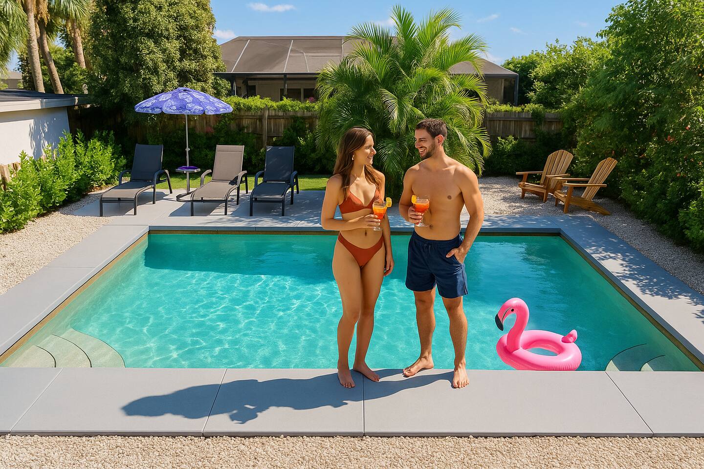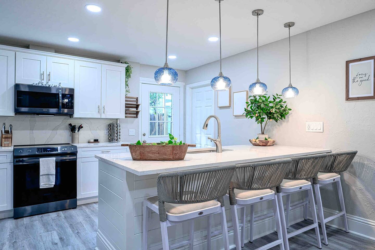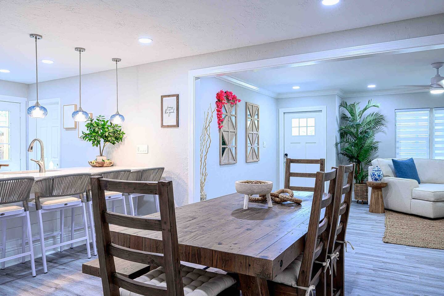 🏠 The Space This home is designed for comfort, style, and unforgettable memories. The open layout flows effortlessly from the living room to the kitchen and dining areas, all bathed in natural light. What You’ll Love: 3 stylish bedrooms w/ premium linens & Smart TVs Spacious open-plan living area w/ chic furniture Fully equipped kitchen with quartz countertops & modern appliances Indoor dining for 6 + island seating for 4 Backyard oasis w/ pool & fire pit Washer/dryer, high-speed Wi-Fi, central A/C