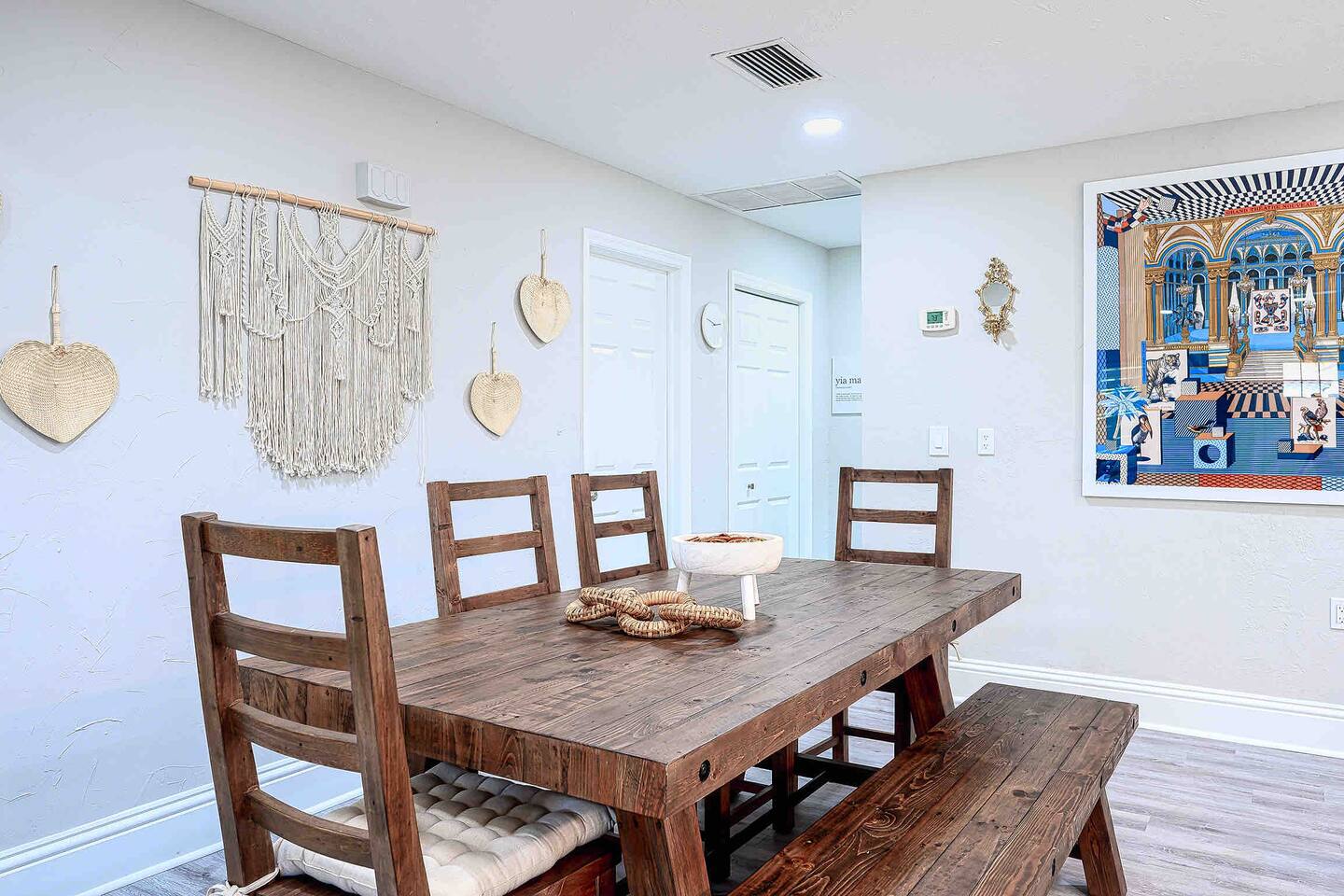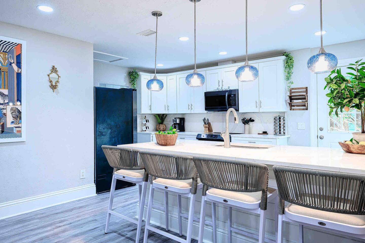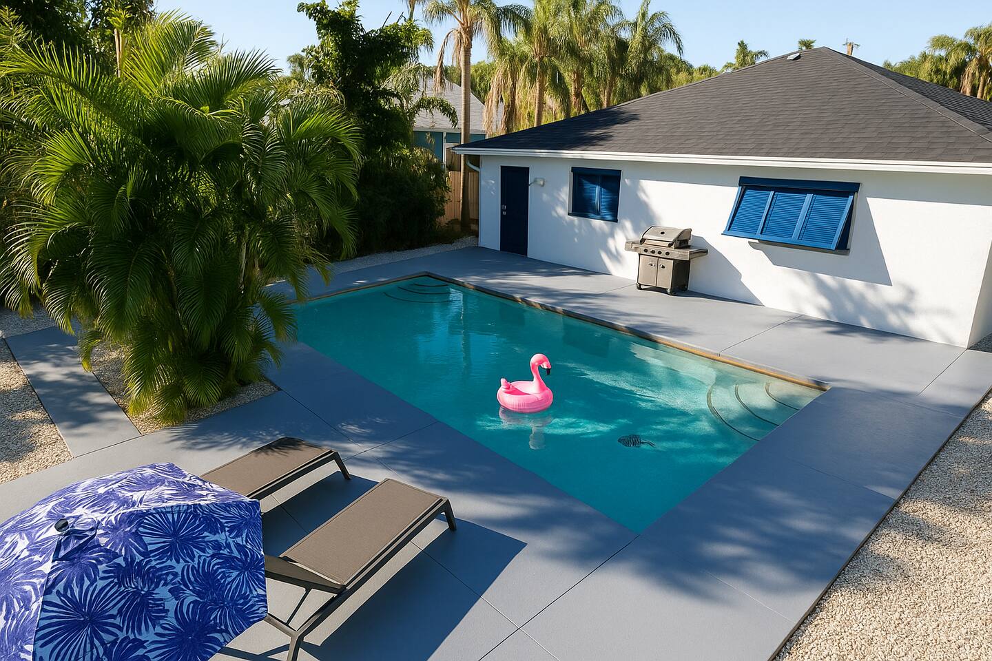🏠 The Space This home is designed for comfort, style, and unforgettable memories. The open layout flows effortlessly from the living room to the kitchen and dining areas, all bathed in natural light. What You’ll Love: 3 stylish bedrooms w/ premium linens & Smart TVs Spacious open-plan living area w/ chic furniture Fully equipped kitchen with quartz countertops & modern appliances Indoor dining for 6 + island seating for 4 Backyard oasis w/ pool & fire pit Washer/dryer, high-speed Wi-Fi, central A/C