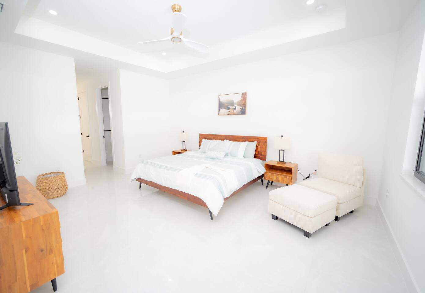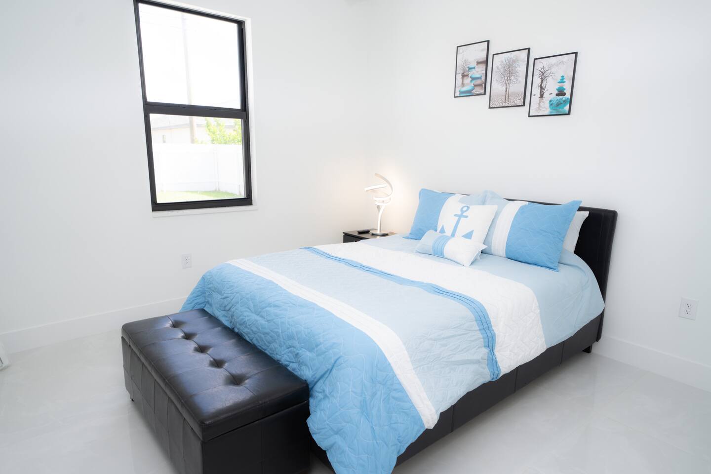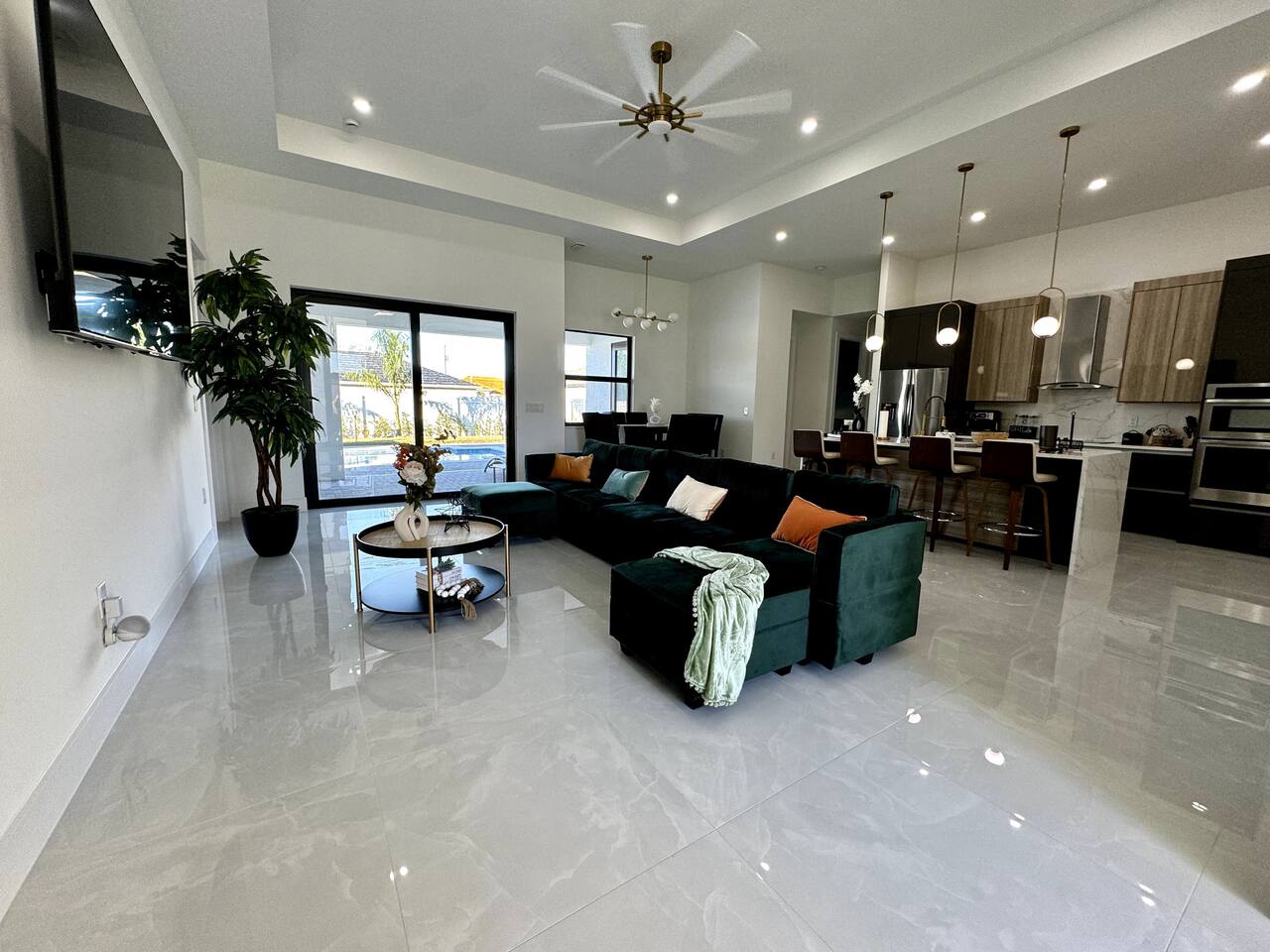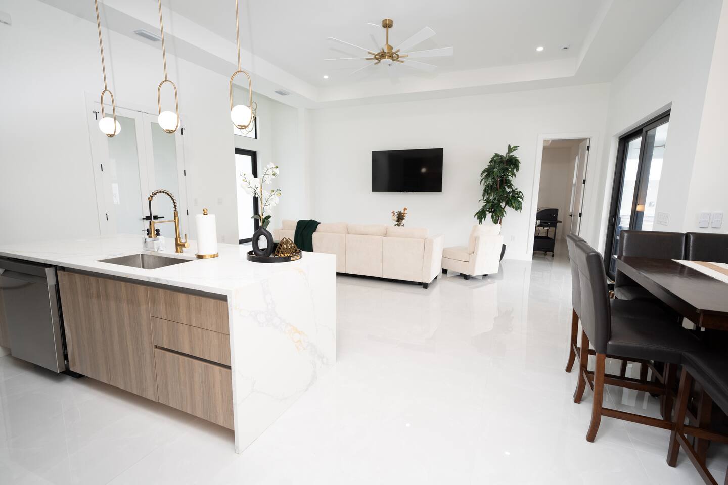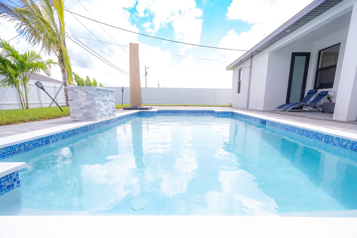 Find your peaceful retreat right here in beautiful Cape Coral, this lovely Oasis features all modern brand new amenities including gorgeous back patio with outdoor kitchen, dining, pool, fenced yard. Sun and sip on a cool drink. Relax and watch movies at the end of the evening in our comfortable large open living room. Cook a gourmet meal in the chefs kitchen. Rest in a comfortable and peaceful nights sleep on the luxury king bed, spacious room for the entire family sleeps over 9 people.