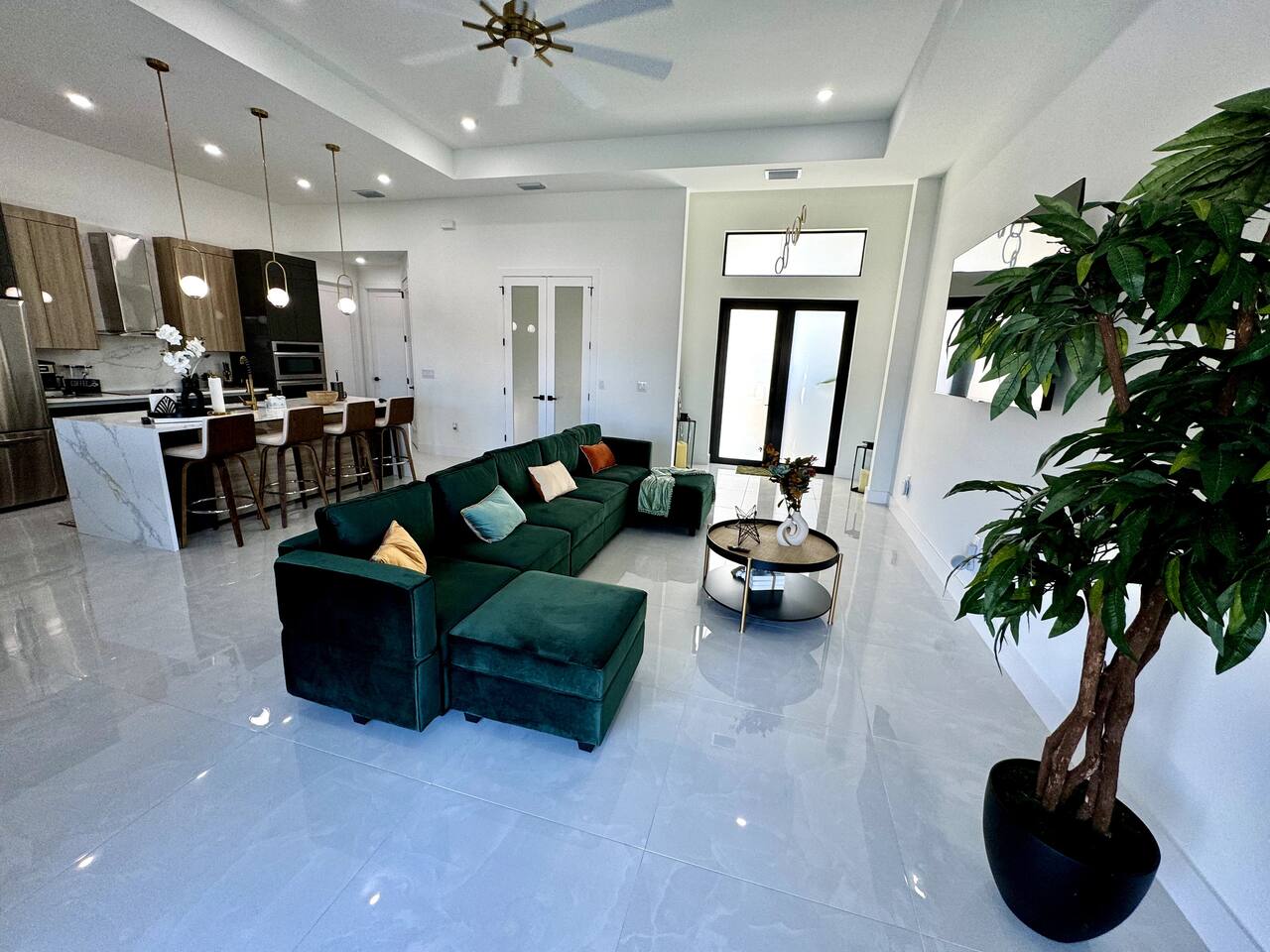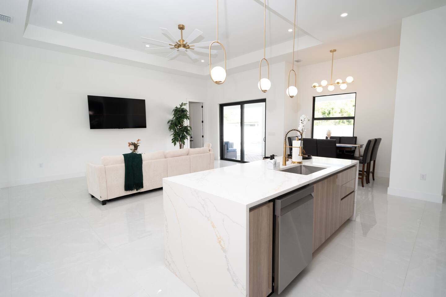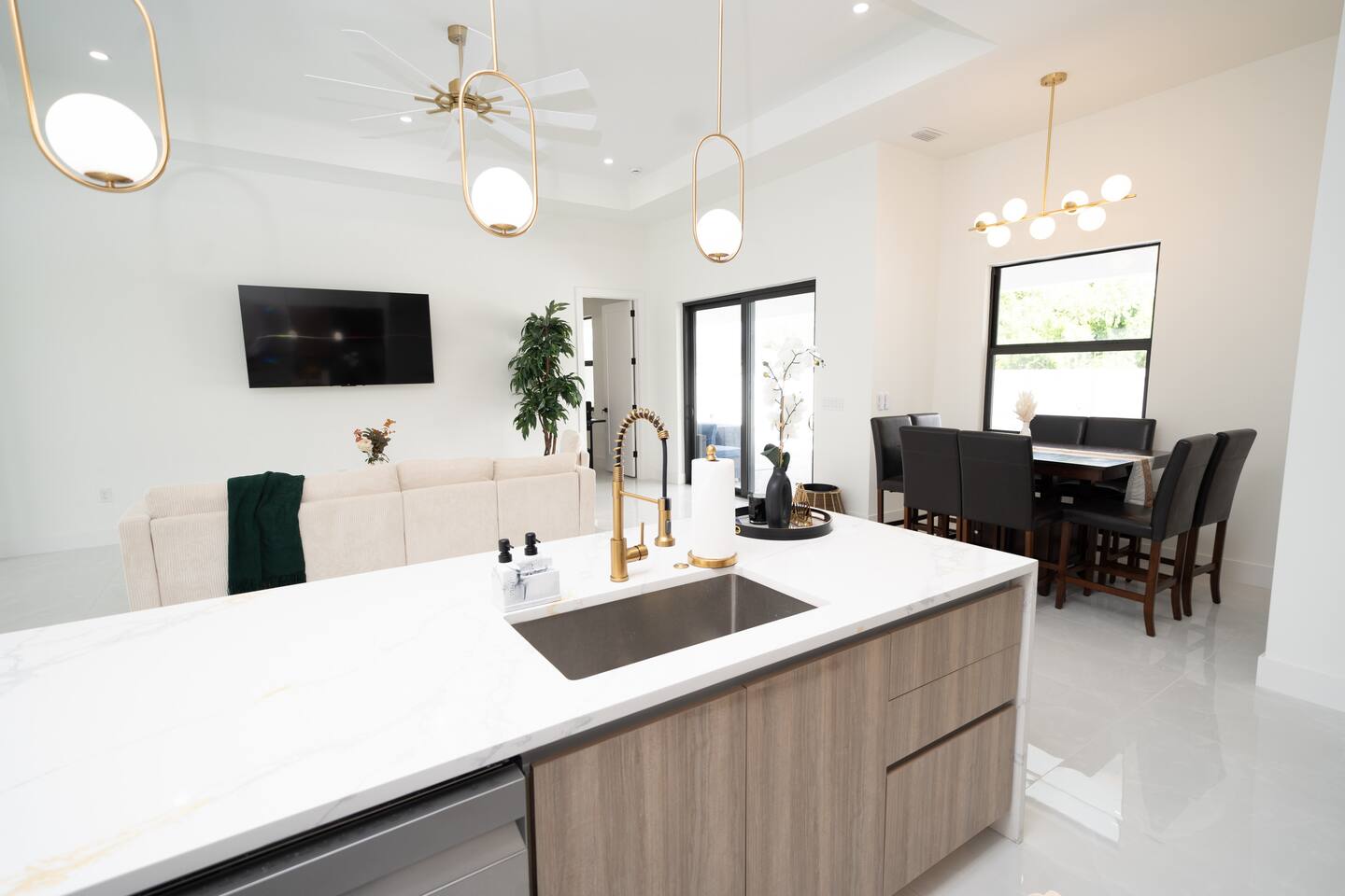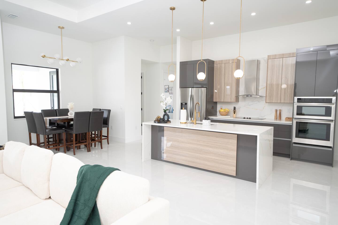 Discover a luxurious, newly built home in Cape Coral, perfectly situated close to all shopping and entertainment hotspots. Enjoy a complete family vacation experience right at home, where you’ll find everything you need. Relax by the stunning pool or savor meals in the outdoor dining area. Inside, the game room awaits with a pool table, foosball, and a giant TV for exciting game nights. Plus, the gourmet chef’s kitchen is fully equipped for creating memorable meals for your guests.